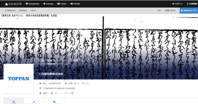 SIGNATEにて、凸版印刷主催くずし字認識コンペティション開催!