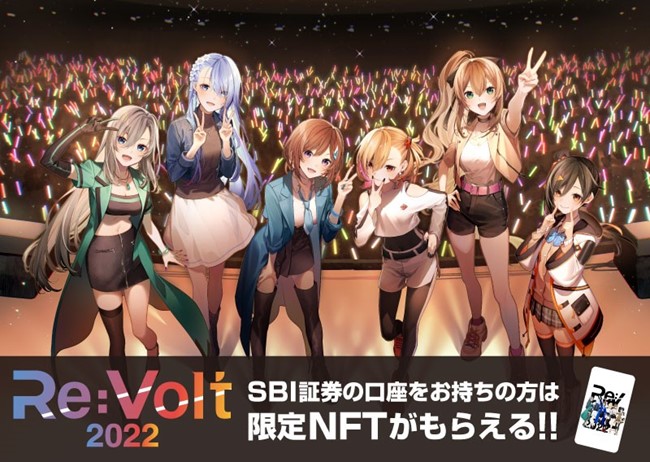 株式会社SBI証券(本社:東京都港区、代表取締役社長:高村正人、以下「当社」)は、株式会社Brave group(代表取締役社長:野口圭登、以下「Brave group」)が2022年3月25日(金)に開催する、人気バーチャルアーティスト「道明寺ここあ」含め総勢6名のRIOT MUSIC所属アーティストが勢揃いする、リアル・オンライン同時ライブ「Re:Volt 2022」に協賛することとなりましたので、お知らせします。