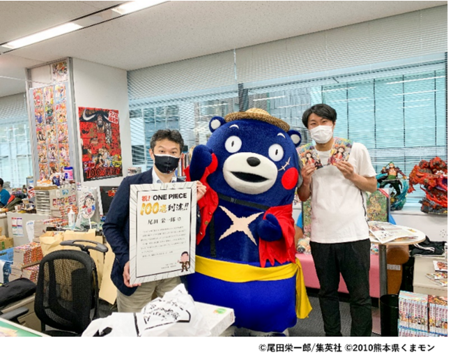 【9月】 マンガ「ONE PIECE」100巻到達を記念し、くまモンが集英社を訪問&100巻セット寄附