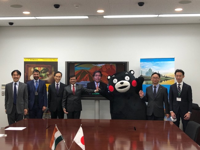 くまモンが、国際協力機構(JICA)との連携協定に基づく活動の一環で、インドの衛生啓発動画に出演し、ついにインドに進出。「国際貢献の第一歩」として、大きな活躍を見せました。くまモンは、JICAがインドで展開する衛生啓発活動「アッチー・アーダト(良い習慣)キャンペーン」に協力し、若年層をターゲットに手洗いを奨励する動画の中で、熊本城を背景に得意のダンスを披露するなど、くまモンの魅力を発揮しながら衛生の啓蒙活動に勤しみました。また、動画の公開を機に、くまモンが在日インド大使館を表敬訪問。蒲島郁夫熊本県知事からのビデオメッセージを届けました。