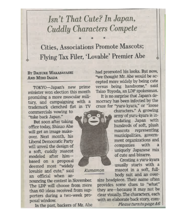 ・2012年12月 米紙「ウォールストリートジャーナル」の一面を飾る