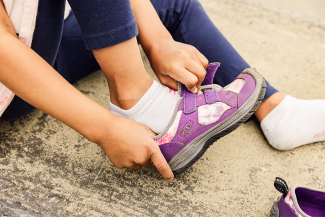 アッパー2か所の面ファスナーストラップは、脱ぎ履きしやすいデザインなだけでなく、甲高などの足のカタチに合わせて調整も可能にします。足型には、KEENオリジナル開発の子どもの木型を使用。デザインとソールの両面でフィット感を向上し、アクティブな子ども達の俊敏な動きをサポートします。