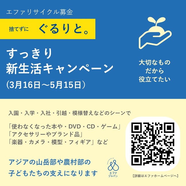 すっきり新生活!不用品で国際協力【エファジャパンリサイクル募金「ぐるりと。」すっきり新生活キャンペーン】