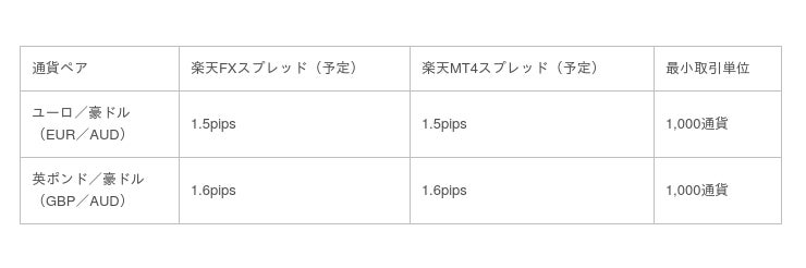 「楽天FX」「楽天MT4」追加通貨ペア 概要