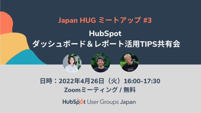 株式会社100(ハンドレッド)の代表取締役 田村 慶は、自身がリーダーとして務めるHubSpotのユーザーグループ「Japan HubSpot User Group(通称:JapanHUG )」にて、3回目のオンラインイベント「JapanHUG ミートアップ #3」をオーガナイズし、2022年4月26日に開催する運びとなりましたので、おしらせします。