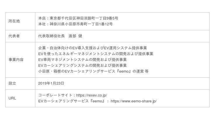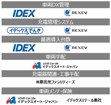 REXEVは、神奈川県小田原市で展開しているEV特化型カーシェアリングサービスの運営等で培ってきたEVカーシェア特有のノウハウを提供するほか、EV車両管理、電力マネジメント、カーシェアリングのシステムを統合したプラットフォームをベースに、イデックス専用のEVカーシェアシステムやアプリの開発を行う予定です。今後急拡大するEV市場において懸念される電力関連の課題にもフォーカスし、EVの利便性向上や有効な活用方法をご提案し、EVの導入拡大と再生可能エネルギーの普及拡大に貢献してまいります。