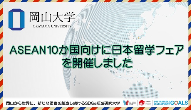 国立大学法人岡山大学(本部:岡山市北区、学長:槇野博史)は、日本留学海外拠点連携推進事業(東南アジア)の一環として、2022年1月17日~2月18日の約1か月間にわたり、ASEAN10か国からの日本留学希望者及び進学指導者等を対象としたオンライン日本留学フェアを開催し、3月18日に開催報告が行われました。