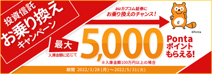 当キャンペーンと合わせて、ぜひこの機会に、おトクにPontaポイントがためられるauカブコム証券へ投資信託の入庫をご検討ください。