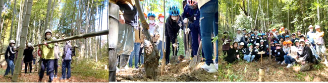 当社が本社を置く大阪府のアドプトフォレスト事業の一環として行っている岸和田市稲葉町(ゆめみヶ丘岸和田内)の里山再生活動に有志社員が訪れ、利用されなくなった竹林の整備や茶や栗の記念植樹を地元の子どもたちと共同で行いました。