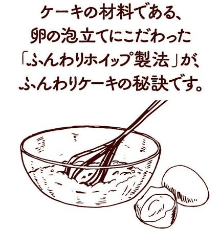 卵の泡立てにこだわった、「ふんわりホイップ製法」がふんわり食感の秘訣です。