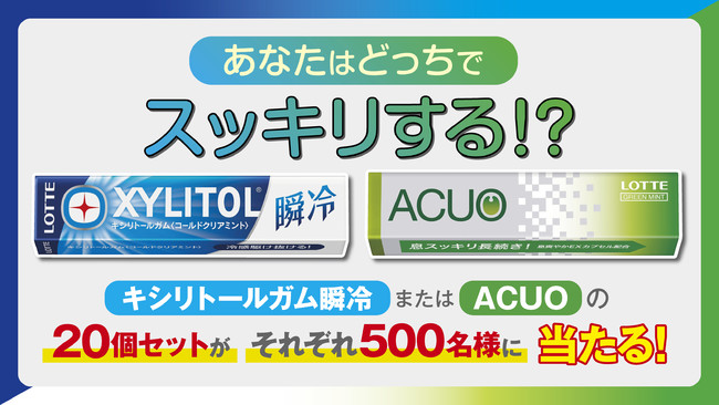 ●賞品:キシリトールガム瞬冷<コールドクリアミント>またはACUO<グリーンミント>20個セット