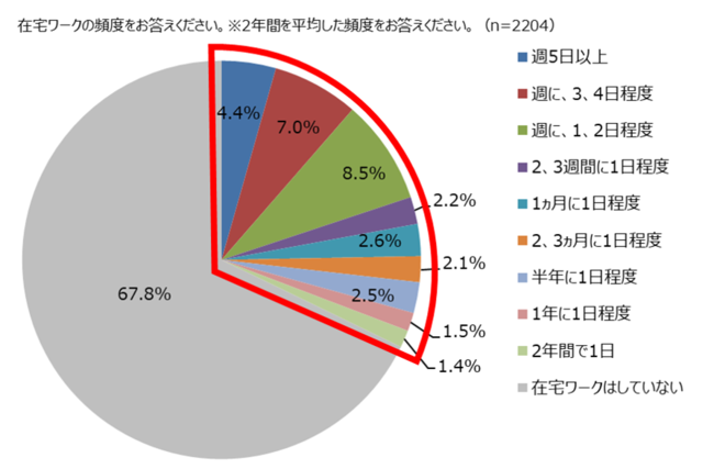1. 24.7%が月一回以上在宅ワークを実施しており、53.9%が在宅ワークの方が好きだと回答