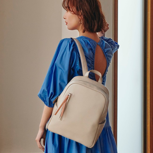 さらに機能性やデザインに関しては「ポケットが10個ありパソコンも入る機能性と、シンプルだけど無機質すぎずに女性らしいファッションにも合うような上品で高級感のあるデザインを意識しました。新作のリュックも皆様のライフスタイルに寄り添い、彩りとなり、長く愛される商品になればとても嬉しいです。」とこだわりのポイントを語っています。