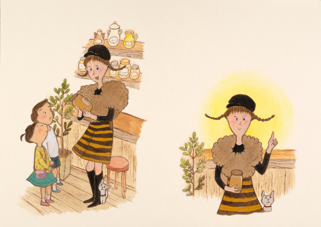 今回、一般の部の最優秀作品に選ばれた『ふしぎなハチミツ屋さん』は1冊の絵本となり、来年度の「みつばち文庫」の1冊として、全国の小学校に寄贈します。