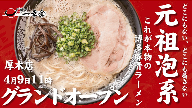 神奈川初出店!豚骨ラーメン『博多一幸舎』厚木店 4月9日グランドオープン。オープンから2日間は、各日先着100名にプレゼントキャンペーンも実施。