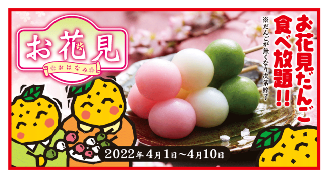 株式会社物語コーポレーション(本社:愛知県豊橋市/代表取締役社長:加藤 央之)は、全国93店舗展開する『寿司・しゃぶしゃぶ ゆず庵』(以下、ゆず庵)にて、2022年4月1日(金)~4月10日(日)まで、"お花見だんご"が食べ放題となる「ステキな日本をゆず庵で~お花見~」キャンペーンを開催いたします。