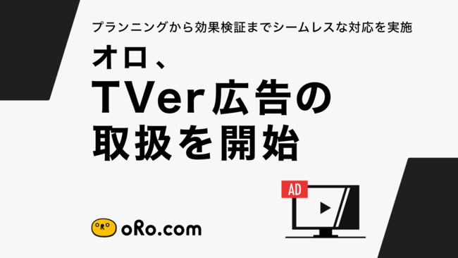 デジタルマーケティングの戦略設計から実施・運用をワンストップで手掛ける株式会社オロ(本社:東京都目黒区 代表取締役社長:川田 篤 以下 オロ)は、TVer広告の取扱いを開始したことをお知らせいたします。本サービスではプランニングから効果検証までシームレスな対応を実施し、普段テレビを見る機会が少ないローテレ層への訴求を実施します。