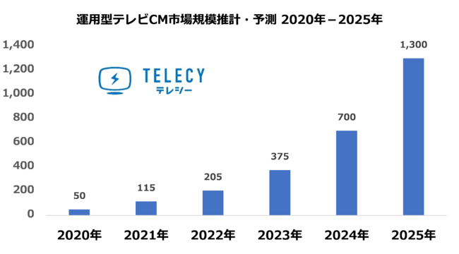 テレシー、2021年の運用型テレビCM市場は115億円、2025年には1,300億円に拡大と予測