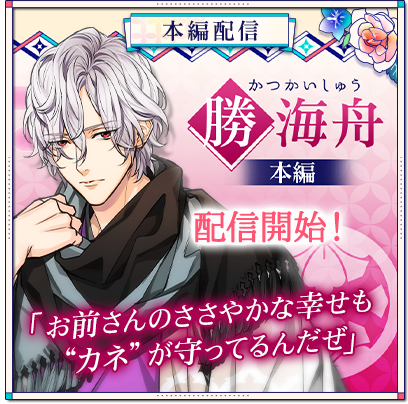 株式会社ボルテージ(本社:東京都渋谷区 代表取締役:津谷 祐司)は、提供中のボル恋タイトル「幕末維新 天翔ける恋」(以下「幕天」)にて、勝海舟の本編ストーリーを4月1日(金)より配信開始したことをお知らせいたします。