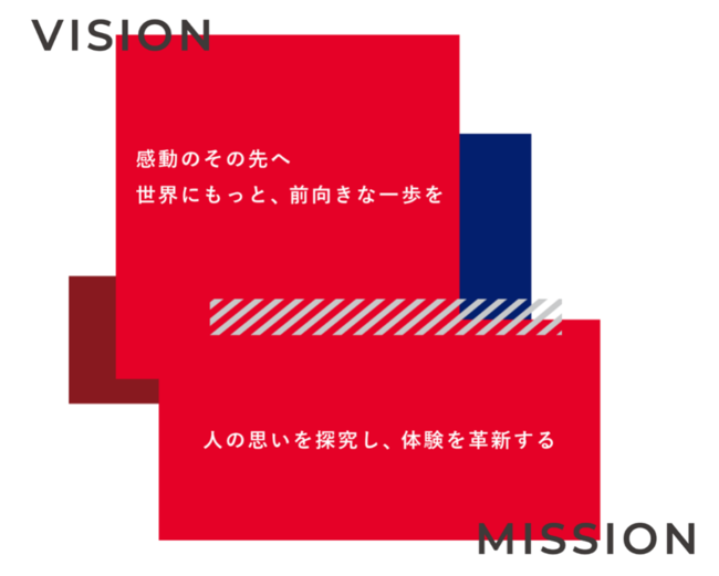 CIの中心となるミッション・ビジョンは、社員参加型のワークショップを通じて、延べ136名の社員と40回にも及ぶセッションを通じてつくられました。イベントや空間プロデュース・防災・PR・アート事業に幅広く携わる当社は「人の思いを探究し、体験を革新する」というミッションを掲げ、感動体験を通じて世界中の人々がもっと前向きな一歩を踏み出せるような社会の実現を目指していきます。