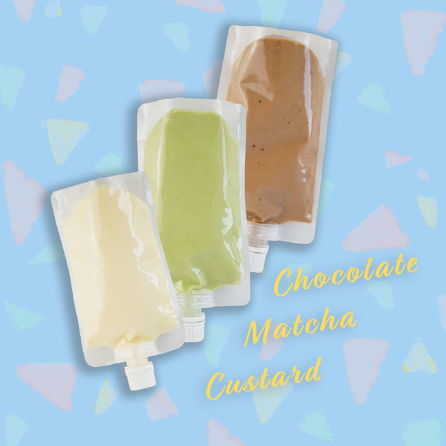 以前より、お客様から「クリームだけを楽しみたい」というお声もいただいており、昨年実施したテスト販売で好評を得て、この度オンラインショップの定番商品として販売を開始することになりました。「カスタード味」「チョコレート味」「抹茶味」の3種を、ご利用いただきやすいチューブタイプでご用意しました。ディップ、サンド、トッピング、飲む?アレンジは自由自在にお楽しみいただけます。