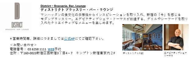インスタグラム:@kimptonshinjukutokyo | @thejonestokyo | @districttokyo