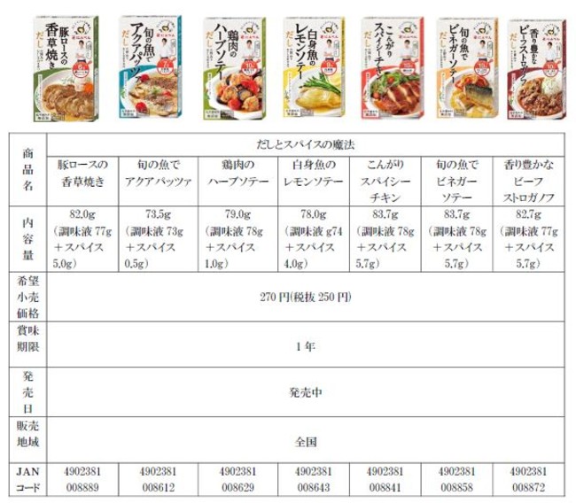 2018年、共同開発の料理専用調味料『だしとスパイスの魔法』シリーズが発売。