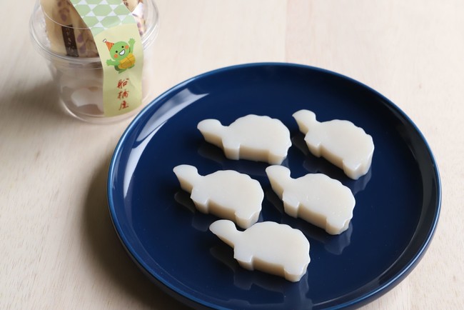 定番のくず餅をお手軽に食べることができると人気のカップくず餅。通常ひし形にカットされているくず餅が亀の形にカットされた可愛らしい商品です。