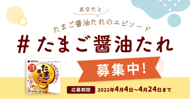 株式会社Mizkan (本社:愛知県半田市、代表取締役社長兼CEO:吉永 智征、以下:ミツカン)は、2022年4月4日(月)より「あなたと#たまご醤油たれのエピソード募集」キャンペーンを開始いたします。