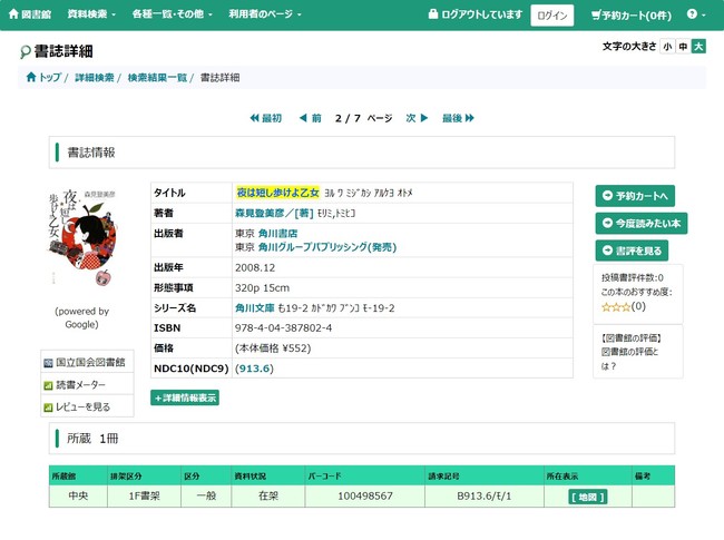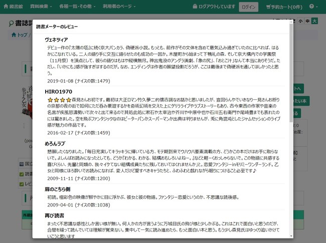 図書館の本詳細ぺージから、読書メーターの本の詳細ページを閲覧することができます。