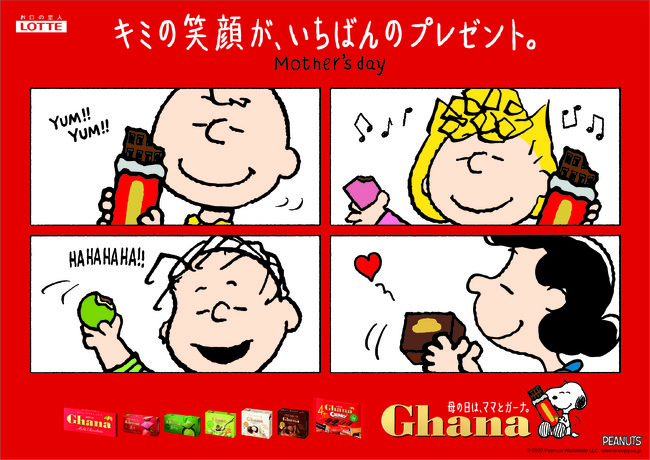 株式会社ロッテ(本社:東京都新宿区)は、母の日に向けて『ガーナチョコレート』の新CMを2022年4月5日(火)より全国にて放送します。今年の母の日は、3年目となるPEANUTSとのコラボレーションを展開しています。
