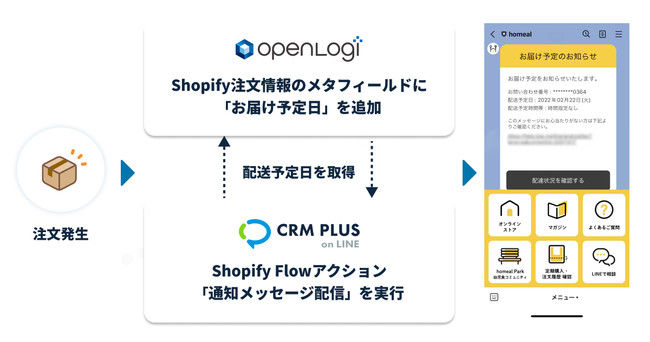 配送予定日入りのLINE通知メッセージが可能に!Shopifyアプリ「CRM PLUS on LINE」、オープンロジと連携