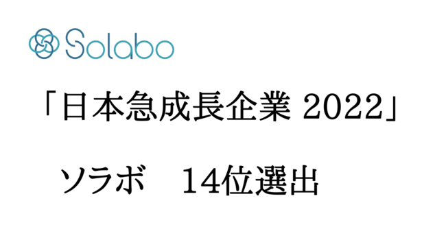 起業家・経営者の資金調達支援、経営支援事業を展開する株式会社SoLabo(本社:東京都千代田区、代表取締役:田原 広一)は、日経ビジネスと調査会社スタティスタ(Statista)が共同で実施した日本の成長企業を発掘する調査プロジェクト「日本急成長企業2022」において、14位に選出されました。