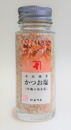 丁寧に選別した本枯鰹節と沖縄の海水でつくられた食塩を使用し、料理の仕上げや、炒め物などの味付けにも便利に使える卓上用調味塩です。空気中の酸素の影響を抑え、長期間にわたって良好なかつお節の風味を保持できるコーティングによるマイクロカプセル化技術を取り入れています。