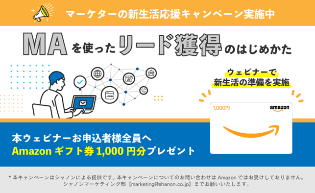 株式会社シャノン(本社:東京都港区、代表取締役社長:中村 健一郎)は、リード獲得のはじめかたをご紹介するウェビナーを4月19日(火)に開催します。