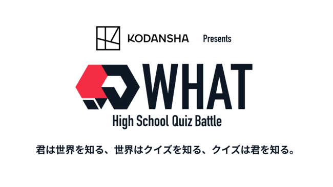 QuizKnockはこれまで「楽しいから始まる学び」をコンセプトに、何かを「知る」きっかけとなるような記事や動画を毎日発信してきました。今回、「”おもしろくて、ためになる”を世界へ」というメッセージを掲げる講談社さまに我々のコンセプトへの共感をいただき、メインスポンサーに就任していただきました。スポンサー決定に伴い、大会名を「KODANSHA Presents High School Quiz Battle WHAT 2022」に変更いたします。