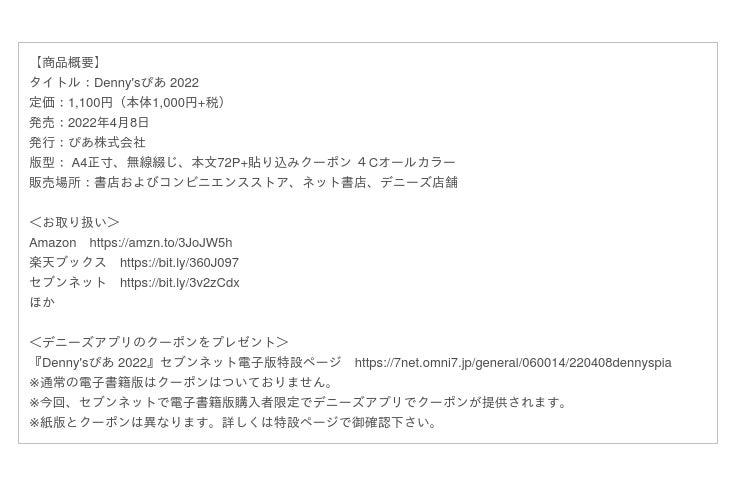 ▼『Denny'sぴあ 2022』セブンネット電子版特設ページ https://7net.omni7.jp/general/060014/220408dennyspia