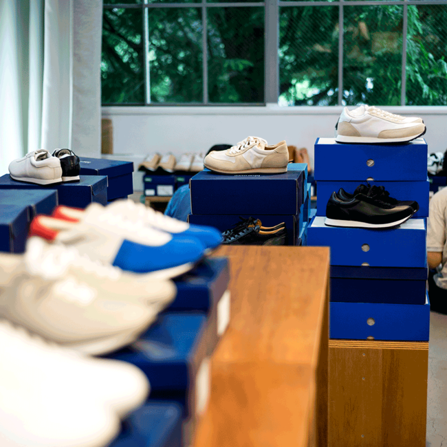 blueoverは、2011年より大阪でスタートした国産スニーカーブランド。地域に根付く靴づくり文化を後世に残すため、できるかぎりの素材、工程を日本で作り届けています。流行だけを追わず、靴としての快適性、長く履けるというあたりまえをしっかりと考え、時代を問わず履き続けられるような、シンプルで普遍的な靴を作ります。今年3月に「築地銀だこ」とのコラボレーションで話題となった。