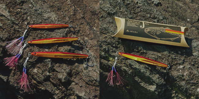 製品名には『ARAKA JIG ver.1.0』と初期バージョンであることを意味するver.1.0の表記がついており、今後はさらなる究極のスタンダードルアーを目指すべく、実際に使用いただいたユーザーの声を基に改良を重ね、バージョンアップし続けるという、これまでにない新しい開発プロセスで商品開発・提供を行っていく予定です。