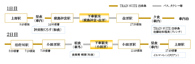 * : 「TRAIN SUITE 四季島」の行程は10・11月出発の1泊2日コース(山梨)と同内容になります。