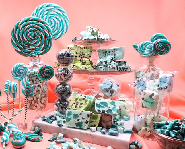 「世界一おもしろいお菓子屋さん」アート・キャンディ・ショップ「PAPABUBBLE/パパブブレ」は、大丸東京店(東京都中央区)、名駅店(名古屋市)、ルクア大阪店(大阪市)の3店舗を期間限定のチョコミントショップとして、ゴールデンウイークが始まる4月28日よりオープン。海外メディアからも取材される人気のチョコミントを33種類ご用意。お店をチョコミントカラーで埋め尽くします。