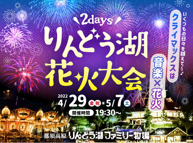 那須興業株式会社(栃木県那須町/代表取締役社長:矢澤 剛志)が運営する那須高原りんどう湖ファミリー牧場は、2022年4月29日(金)と5月7日(土)の2日間、GW期間で初の開催となる「りんどう湖花火大会」を開催します。本花火大会では初の試みとして、クライマックスに音楽に合わせて花火が打ちあがる“音楽×花火”のコラボレーションが決定しました。