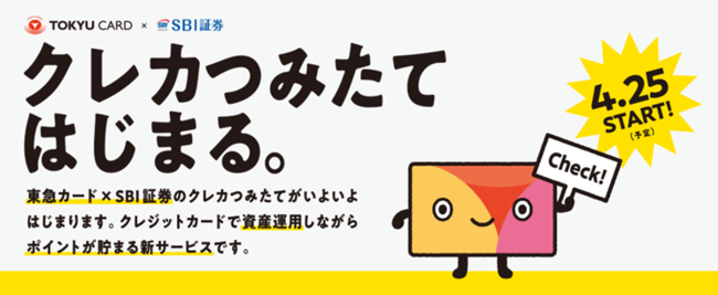 株式会社SBI証券(本社:東京都港区、代表取締役社長:高村正人、以下「当社」)と東急カード株式会社(代表取締役社長:梅原昌弘、以下「東急カード」)は、2022年4月25日(月)から、東急カードが発行するクレジットカードで投資信託が買えるクレジットカード投信積立サービス「クレカつみたて」と、資産運用に応じて東急ポイントを加算するサービスの提供を開始します。