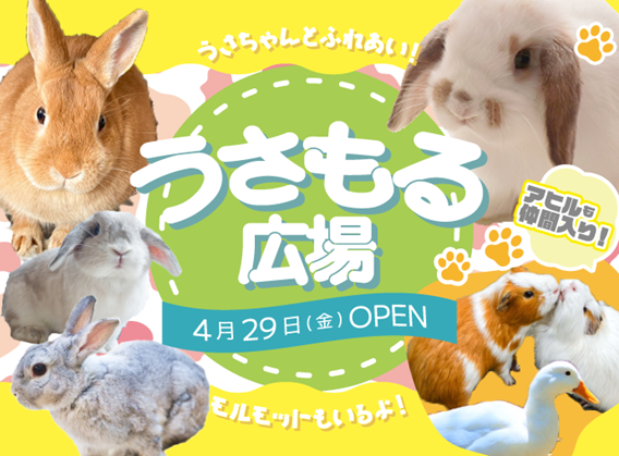 小動物との「ふれあい」をお楽しみいただける“うさもる広場”が、4月29日(金)からオープンします。