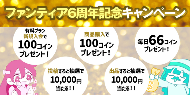 クリエイターの皆様も6周年記念投稿や商品販売を行うと、1万円が当たるチャンス!