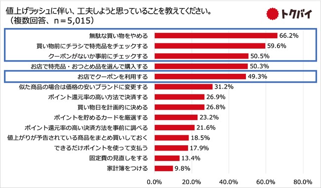 3)値上げラッシュ対策は「無駄な買い物をやめる」「買い物前にチラシで特売品をチェックする」