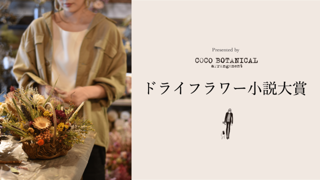 本企画では、「代官山にひっそりと佇むドライフラワーショップ」をお題として”ドライフラワー”に纏わる物語を募集。大賞作品をインスパイアしたドライフラワーを制作し、併せて同作品が掲載された「小説から生まれたドライフラワー オリジナルミニブック(仮称)」をCOCO BOTANICALの店舗で商品を購入された方へ配布する予定です。