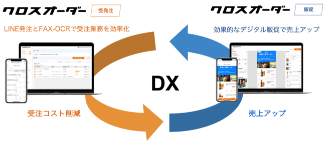 当社は「新たな価値を生み出す、食のマーケットプレイスをつくる」というビジョンを掲げ、食品流通のDXを推進しています。飲食店様と卸売業者様をつなぐ受発注プラットフォーム「クロスオーダー」は、これまでFAXや電話が主流だった受発注業務をスマートフォン上のLINEのインターフェース(画面と操作)を通じて行うことで、業務効率化と販売促進を実現するサービスです。ウィズコロナで、業務のデジタル化・DXのニーズは高まり、サービス開始から約2年で当月の利用店舗数は20,000店舗を超え急速に拡大しています。