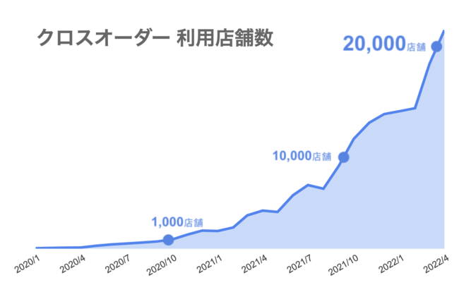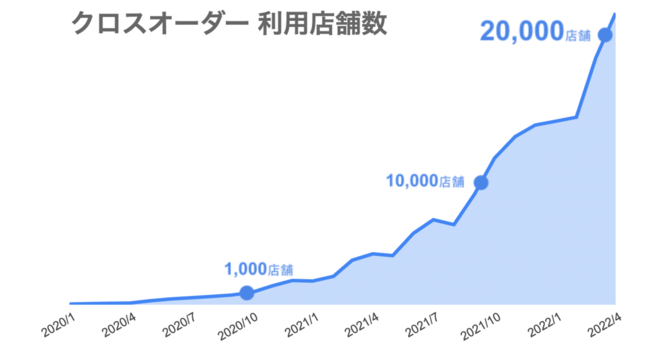 サービスを開始して2年5ヶ月で利用飲食店が20,000店舗を超えました。最初の10,000店舗に到達するまでに2年かかり、20,000店舗はそこからわずか5ヶ月で到達することができました。サービスの成長を実感し、大変嬉しく思います。