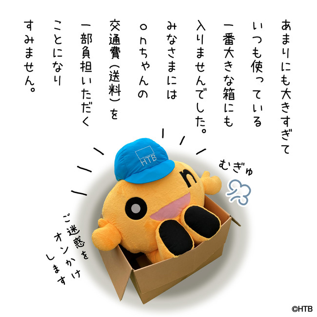HTB北海道テレビのマスコットキャラクター「onちゃん」25周年を記念して、onちゃんグッズ史上最大!立った状態で約115 cm、座った状態で約74 cmのメガサイズのonちゃんぬいぐるみが数量限定で登場!